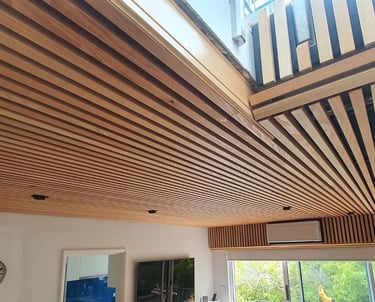 Whether it is timber grained or powder-coated, aluminium is perfect for your external feature battens. With the Austratus clip on system, it couldn't be easier. Either direct fixed or on the TCR rails, it can be used on walls or ceilings inside or out.