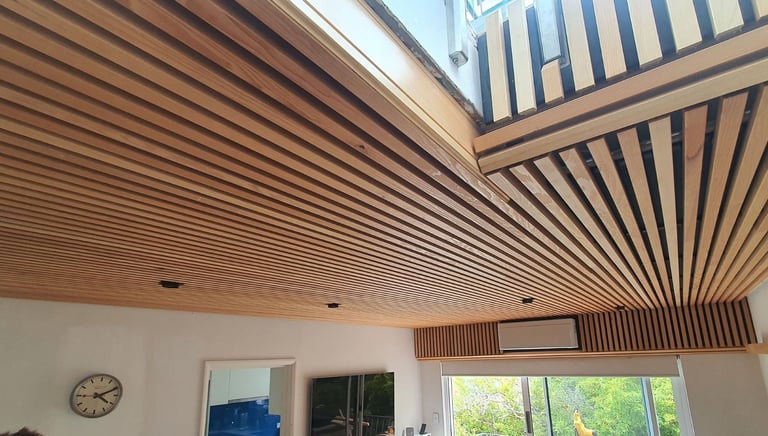 The Austratus clip on system is the easy option for installing timber battens on the ceilings or walls. With its simple installation, the battens clip directly on to rails, suspended ceiling or directly fixed to the wall. Multiple species of timber are available with Hemlock and Western Red Cedar being the most popular. The timber can be painted or stained as required.