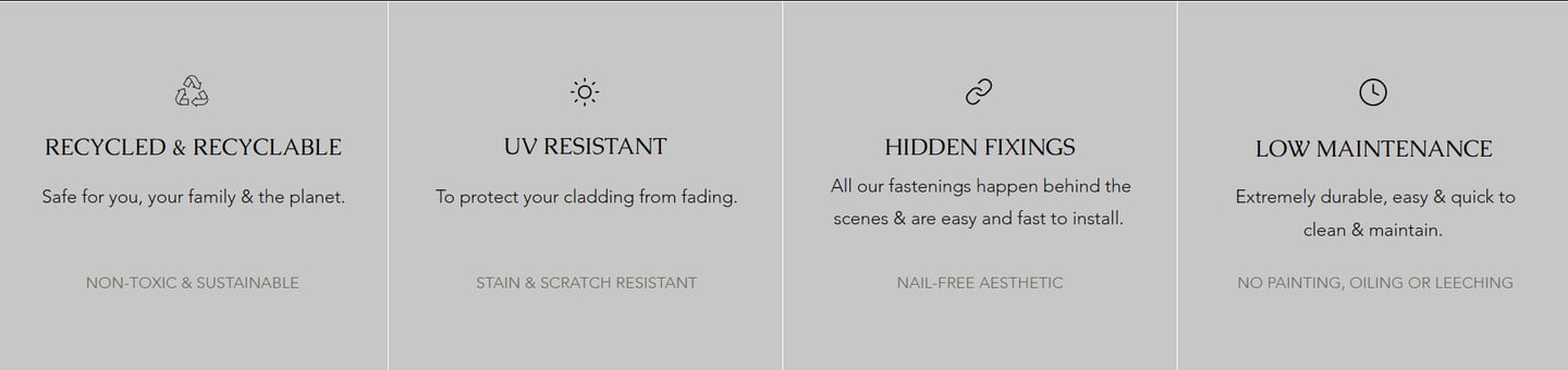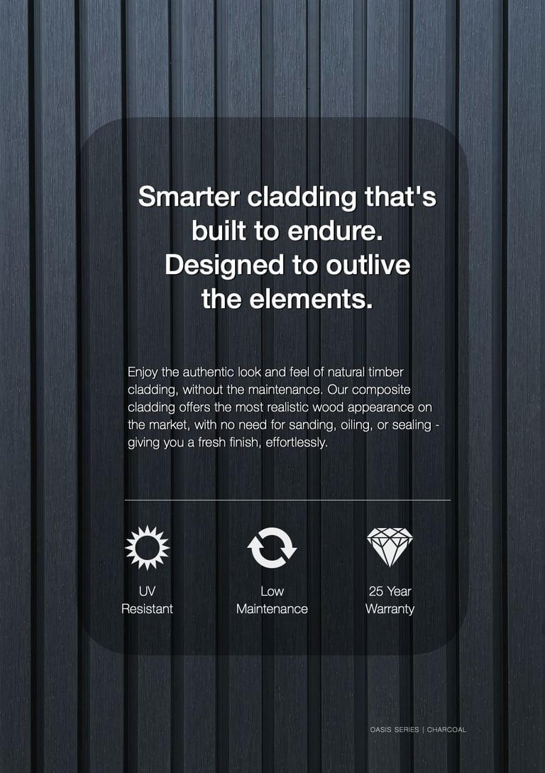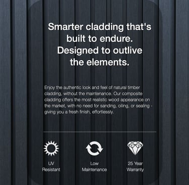 With the authentic look and feel of natural timber cladding - without the maintenance, Our composite cladding offers the most realistic wood appearance on the market, with no need for sanding, oiling, or sealing - giving you a fresh finish, effortlessly.
